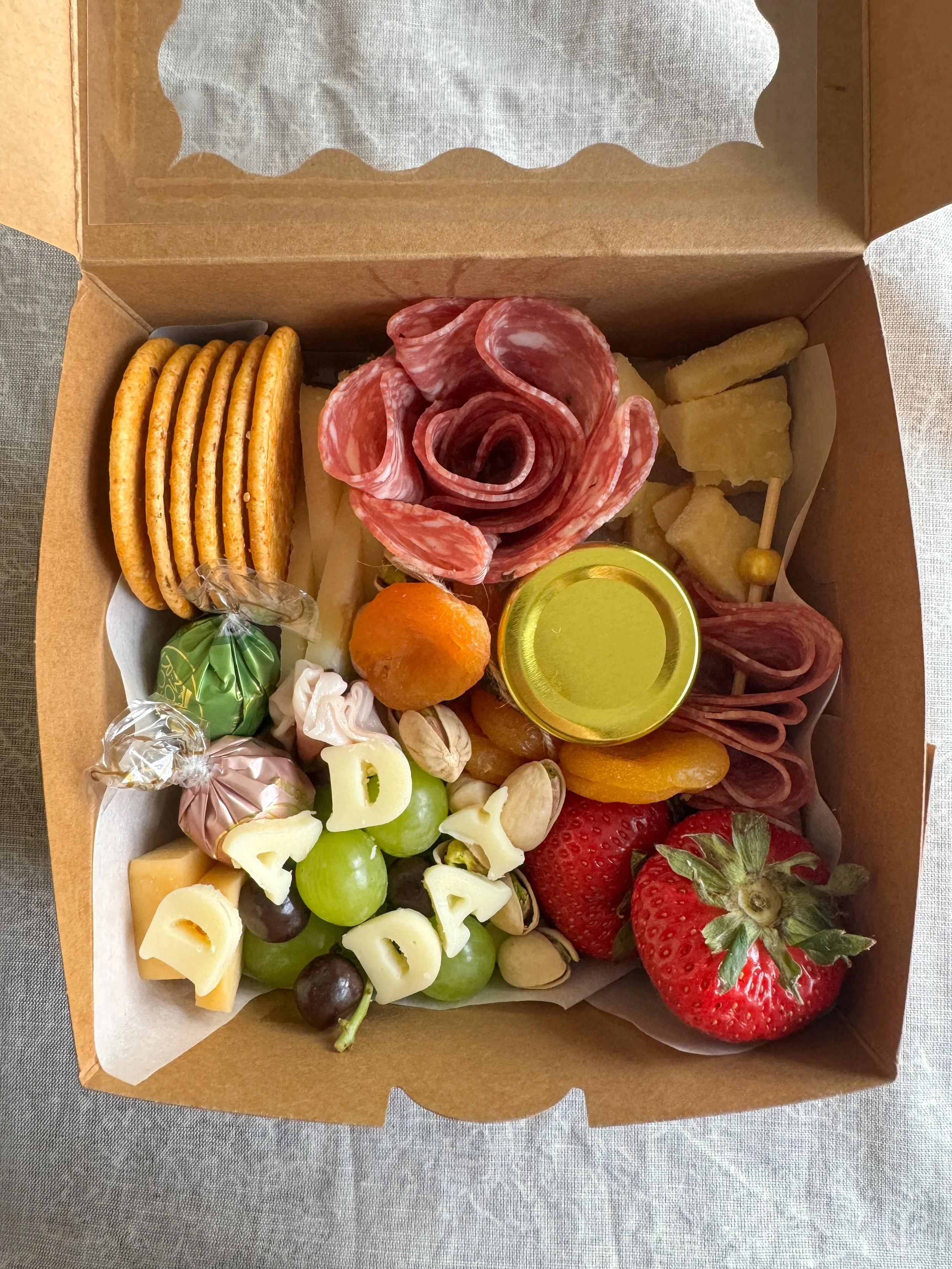 Looking to add a little something extra to your order? Our Pantry is stocked with delicious little extras to round out your board or grazing table — things like whipped dips, marinated olives, extra cheese, chocolate-covered treats & seasonal favorites.