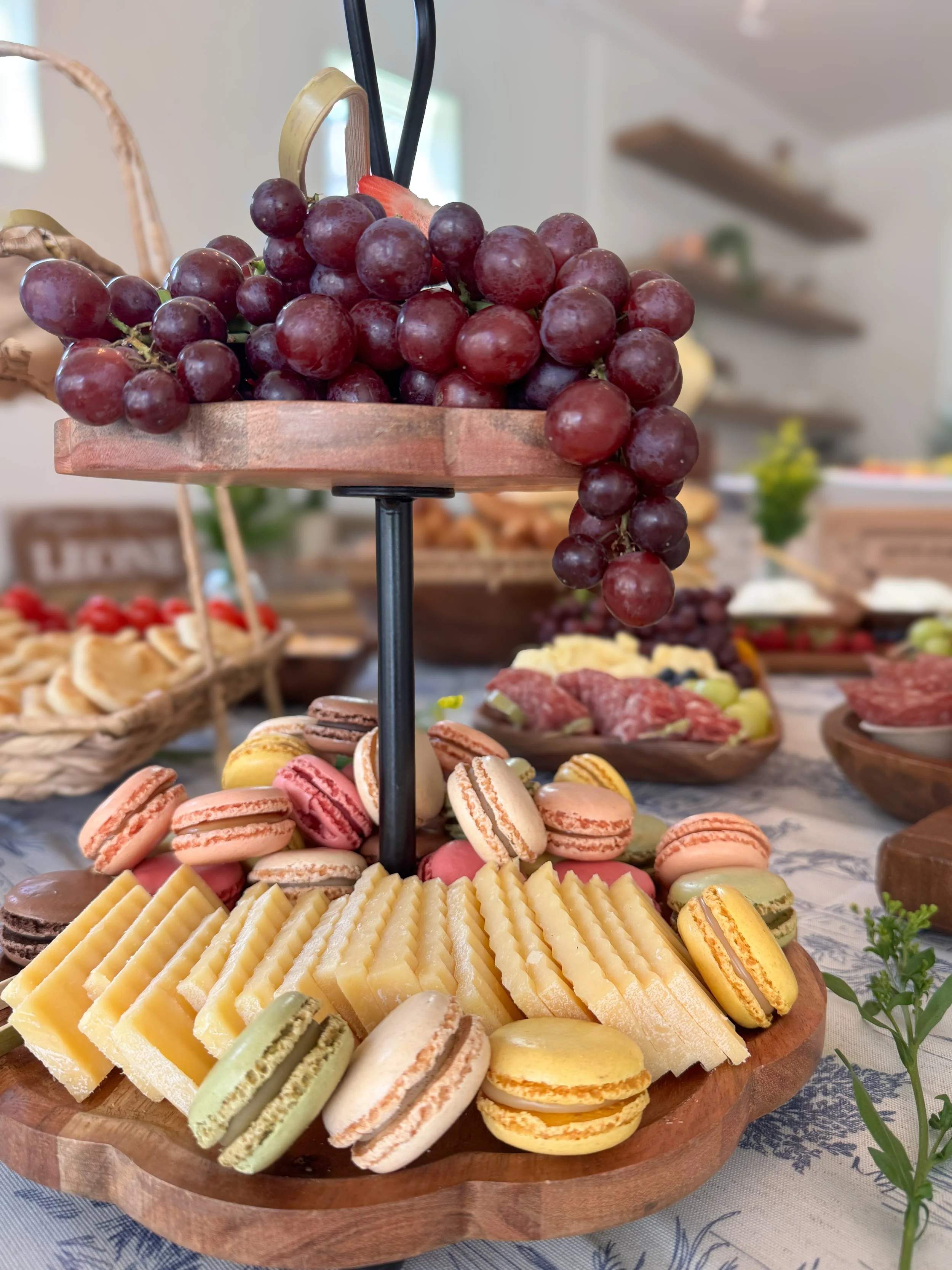 For an elevated look, our grazing tables include presentation risers that add height, dimension, & visual impact. These multi-level displays create a stunning focal point that truly enhances your event. Greenery & florals can also be styled by our team to complete the overall presentation.